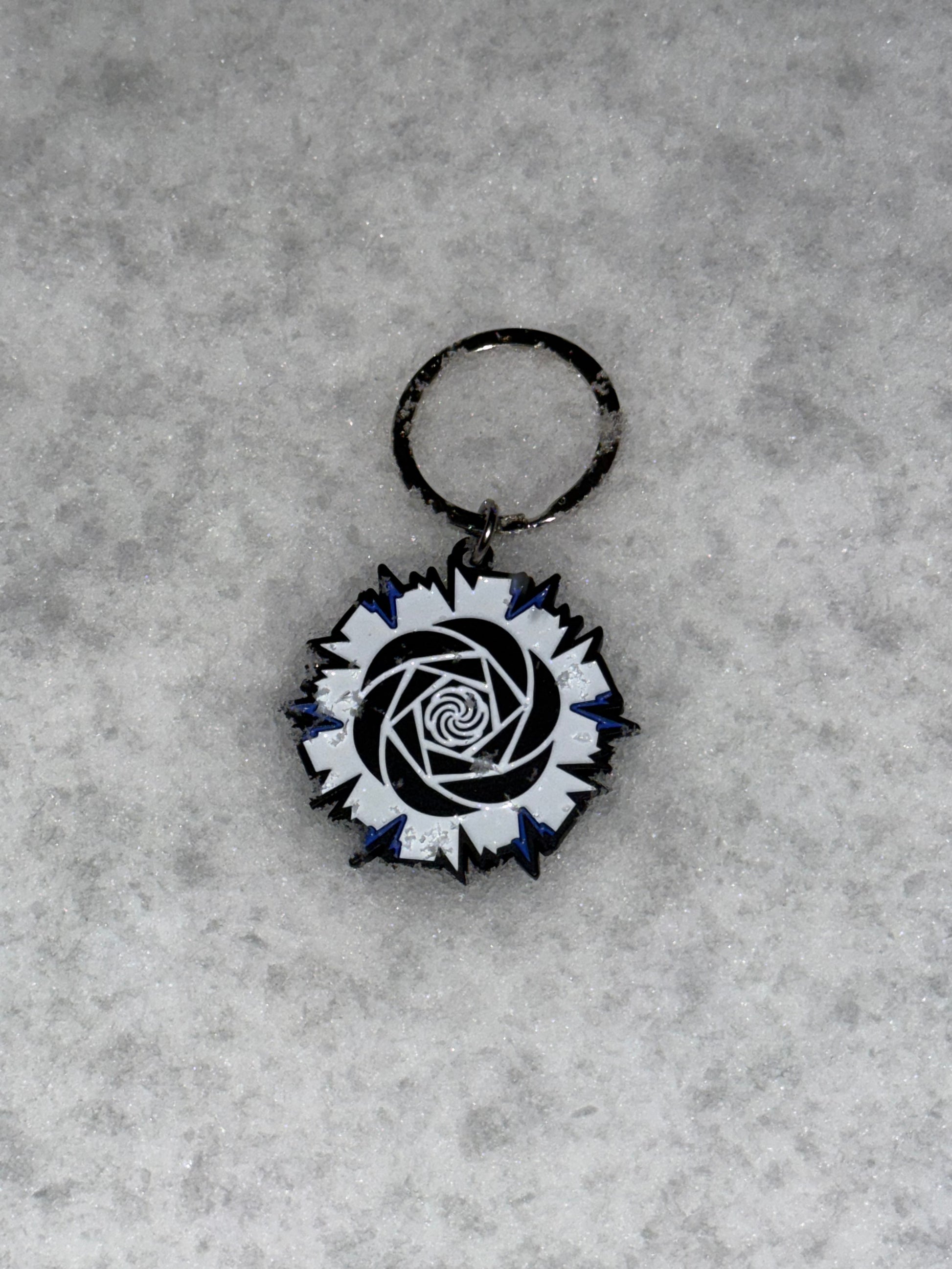 45mm Raised Black Metal Keyring/ Soft Enamel Blue & White